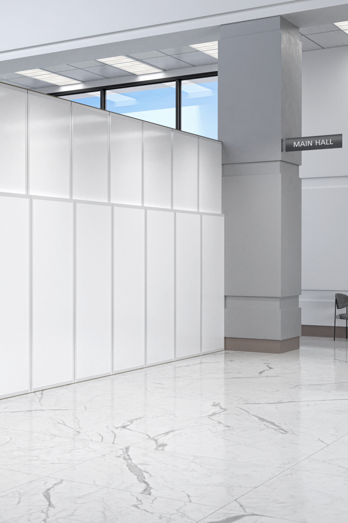Constructed with an all-aluminum exterior, the Rapid Room 1500 is lightweight and easy to handle while remaining significantly more durable than typical temporary wall alternatives. Its smooth, cleanable surfaces make it well suited for healthcare, institutional, or data center containment where cleanliness and infection control are critical.